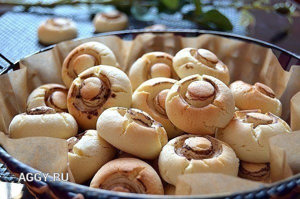 Оригинальный рецепт приготовления ароматного печенья с добавлением крахмала. Грибочки получаются рассыпчатыми и вкусными.