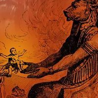 Брала баба ребенка из отцовских рук, перекладывала на руки идольскому служителю, он разрезал его на куски и клал на сковородку Удачи, чтобы пожарить.