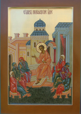 Преполови́вшуся пра́зднику,/ жа́ждущую ду́шу мою́ благоче́стия напо́й вода́ми,/ я́ко всем, Спа́се, возопи́л еси́:/ жа́ждай да гряде́т ко Мне и да пие́т.// Исто́чниче жи́зни на́шея, Христе́ Бо́же сла́ва Тебе́.