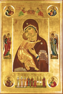 Владимирская икона Божией Матери написана Евангелистом Лукой на доске от стола, за которым трапезовал Спаситель с Пречистой Матерью и праведным Иосифом. Божия Матерь, увидев этот образ, произнесла: "Отныне ублажат Меня все роды. Благодать Рождшегося от Меня и Моя с этой иконой да будет".