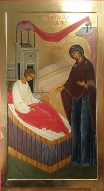 С любовью, Чистая Дева, Твою святую икону почитающим, и как истинную Матерь Божию Тебя прославляющим, и с верой поклоняющимся Тебе, стань Целительницей, всякое зло и болезни от них удаляющей, как Всемогущая.
