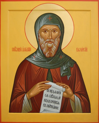 Перевод: Ревнителя Илии нравом подражая, за Крестителем прямыми путями следуя, отче Антоний, ты сделался обитателем пустыни и вселенную утвердил молитвами твоими. Потому ходатайствуй пред Христом Богом о спасении душ наших.