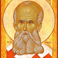 Перевод: Пастырская свирель богословия твоего победила трубы риторов, ибо, как взыскавшему глубин Духа, и красота слова была дарована тебе. Но ходатайствуй пред Христом Богом, отче Григорий, о спасении душ наших.