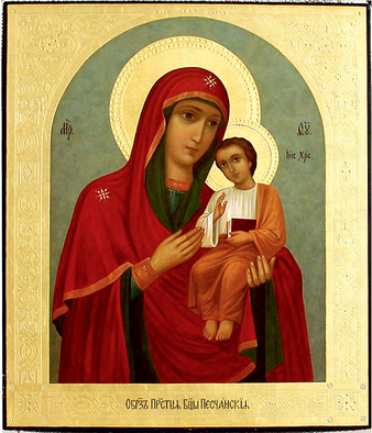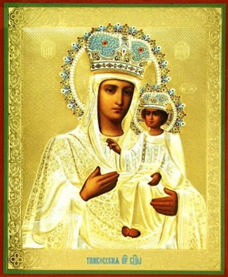 О, Пресвята́я Влады́чице Богоро́дице, Цари́це Небеси́ и земли́, вы́шшая а́нгел и арха́нгел и всея́ тва́ри честне́йшая, чи́стая Де́во Мари́е, ми́ру блага́я Помо́щнице, и всем лю́дем утвержде́ние, и во вся́ких ну́ждах избавле́ние! При́зри и ны́не, Госпоже́ Всеми́лостивая, на рабы́ Твоя́, Тебе́ умиле́нною душе́ю и сокруше́нным се́рдцем моля́щияся, со слеза́ми к Тебе́ припа́дающия и покланя́ющияся пречи́стому и цельбоно́сному о́бразу Твоему́, и по́мощи и заступле́ния Твоего́ прося́щия. О, Всеми́лостивая и Премилосе́рдая Де́во Богоро́дице Чи́стая! Воззри́, Госпоже́, на лю́ди Твоя́: мы бо гре́шнии не и́мамы ины́я по́мощи, ра́зве Тебе́ и от Тебе́ ро́ждшагося Христа́ Бо́га на́шего. Ты еси́ засту́пница и предста́тельница на́ша. Ты еси́ оби́димых защище́ние, скорбя́щим ра́дование, си́рым прибе́жище, вдо́вам храни́тельница, де́вам сла́ва, пла́чущим весе́лие, больны́м посеще́ние, немощны́м исцеле́ние, гре́шным спасе́ние. Сего́ ра́ди, о Богома́ти, к Тебе́ прибега́ем, и на Твой Пречи́стый о́браз с Предве́чным на руку́ Твое́ю держи́мым Младе́нцем, Го́сподем на́шим Иису́сом Христо́м взира́юще, умиле́нное пе́ние Тебе́ прино́сим и вопие́м: поми́луй нас, Ма́ти Бо́жия, и проше́ние на́ше испо́лни, вся бо суть возмо́жна хода́тайству Твоему́: я́ко Тебе́ сла́ва подоба́ет ны́не и при́сно и во ве́ки веко́в. Ами́нь.