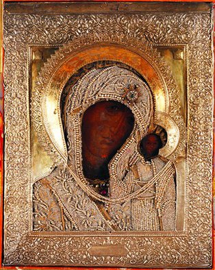 К явленной иконе имелось несколько риз. Праздничная надевалась на Рождество Христово, Пасху и в дни празднования Казанской иконы, будничная, или повседневная, – в остальные дни. Праздничная риза была золотая. На нее надевалась другая риза, низанная крупным жемчугом, бриллиантами, изумрудами, яхонтами и др. драгоценными камнями. Будничная, не менее драгоценная, московской работы, сплошь низанная жемчугом, имела золотые венцы с бриллиантовыми розами, множеством других украшений и драгоценных камней. А в 1767 году императрица Екатерина II приложила к иконе еще и бриллиантовую корону. Видимо именно из-за такого обилия драгоценностей явленная Казанская икона была похищена из Казанского девичьего монастыря шайкой 28-летнего Варфоломея Стояна. Воры вскоре были пойманы, и в ноябре 1904 года в Казани состоялся судебный процесс. Однако, что стало с чудотворной иконой, в ходе следствия окончательно выяснить не удалось. На суде было высказано мнение, что икона была сожжена, так как на квартире Стояна в печи были найдены обгоревшие остатки икон. Мать сожительницы Стояна Кучеровой, показала на суде, что обе иконы были порублены и сожжены Стояном. Сам же Стоян отрицал участие и в краже, и в уничтожении иконы, сознаваясь лишь в покупке краденых драгоценностей. Стоян и его подельник Комов были приговорены к лишению всех прав, имущества и к ссылке на каторжные работы на 12 и 10 лет соответственно.