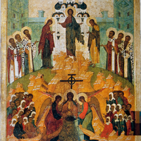 – О, Владычице, родившая Христа Бога нашего! Всякий, надеющийся на Тебя, не погибнет, и я, раб Твой, по милости Божией, имею в Тебе стену и покров и – Крест Сына Твоего – как оружие обоюдоострое на врагов. Умоли Спасителя мира, Которого держишь на руках Своих, чтобы сила крестная была, как огонь, попаляющий врагов, хотящих вступить в брань с нами, и Твое всесильное предстательство да поможет нам одолеть их.