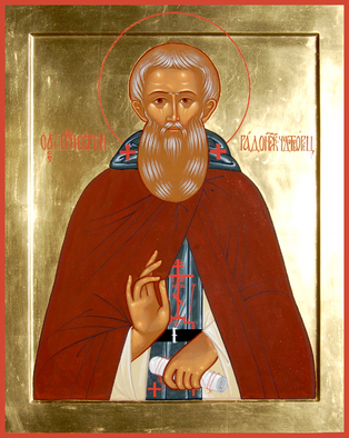 И́же доброде́телей подви́жник,/ я́ко и́стинный во́ин Христа́ Бо́га,/ на стра́сти вельми́ подвиза́лся еси́ в жи́зни вре́менней,/ в пе́ниих, бде́ниих же и поще́ниих о́браз быв твои́м ученико́м;/ те́мже и всели́ся в тя Пресвяты́й Дух,/ Его́же де́йствием све́тло укра́шен еси́./ Но я́ко...