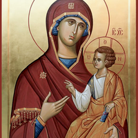 Перевод: Сегодня воссиял вместе со Светом Воскресения свет почитаемой иконы Твоей, оба света с радостью празднуя, взываем: «Сохрани рабов Твоих благодатью, Владычица».
