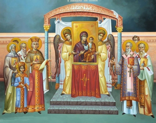 «В сей день, в первую Неделю святого поста, – сообщает «Синаксарь», – Церковью принято праздновать восстановление почитания святых и честных икон, совершенное царем Михаилом III и его матерью, блаженной царицей Феодорой, а также святым патриархом Константинопольским Мефодием».