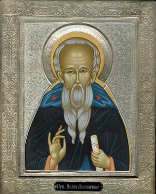 Пусты́нный жи́тель и в телеси́ А́нгел/ и чудотво́рец яви́лся еси́, богоно́се о́тче наш Иоа́нне,/ посто́м, бде́нием, моли́твою Небе́сная дарова́ния прии́м,/ исцеля́еши неду́жныя и ду́ши ве́рою притека́ющих ти./ Сла́ва Да́вшему ти кре́пость,/ сла́ва Венча́вшему тя,// сла́ва Де́йствую...