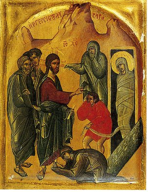 Сам же «Лазарь Четверодневный», или «друг Божий», – это гостеприимный житель Вифании (предместья Иерусалима), брат Марфы и Марии, в доме которого останавливался Иисус Христос (Лк.10:38-41; Ин.12:1-2). Его воскрешение из мертвых на четвертый день (отсюда прозвание), совершенное Христом в форме публичного мессианского «знамения», стало для иудейских властей, опасавшихся религиозных волнений, последним аргументом в пользу немедленной над Ним расправы (Ин.11:47-53).