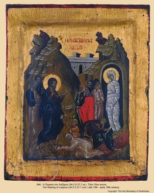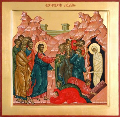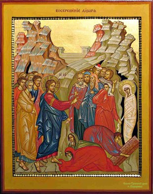 «Воскрешение Лазаря – последнее великое чудо Христа, последний отблеск Славы Его перед ночью страстей. Евангелист Иоанн изображает это событие как очевидец, с поразительной, почти осязаемой достоверностью. Видишь буквально каждый штрих: робость учеников, их колебания и, наконец, решимость идти навстречу опасности. Иисус с глазами, полными слез, у гробницы; сёстры, подавленные горем; смущение Марфы, отваленный камень и властный призыв, услышанный в иных мирах: «Выйди, Лазарь!» Безмолвная фигура в саване на пороге склепа… Тот, Кто вскоре Сам должен будет пройти через врата смерти, объявляет Себя ее победителем»[1].