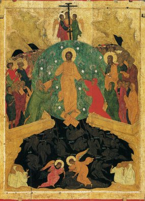 Сошествие Христа во ад – вторая основная тема Великой Субботы. Эта тема идейно связана с мотивом погребения Христа, ибо два этих события, по сути, произошли одновременно: когда Христос телом был во гробе, в это же самое время Он со Своей человеческой душой оказывается во аде (куда до того момента попадали души всех умерших людей) и разрушает власть ада, выводя оттуда души умерших праведников Ветхого Завета. Иногда эти две темы совместно присутствуют в одних и тех же песнопениях (например: «Аще и во гробе погребаешися, аще и во ад идеши, Спасе, но и гробы истощил еси, и ад обнажил еси, Христе»; см. «похвалу» к ст. 52). В стихирах на «Господи, воззвах…» на вечерне с литургией тема сошествия Христа во ад раскрывается особенно подробно: ад принял Христа как «единаго от умерших», но это обстоятельство имело для самого ада губительные последствия: его власть уничтожена, вместе со Христом он вынужден выпустить умерших прежде людей.