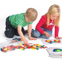Вам потребуется набор геометрических фигур, в который входят квадраты, круги, прямоугольники и треугольники. Они должны быть не только разного размера, но и разного цвета.