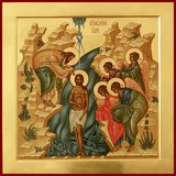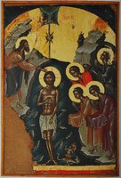 Во Иорда́не креща́ющуся Тебе́, Го́споди,/ Тро́ическое яви́ся поклоне́ние:/ Роди́телев бо глас свиде́тельствоваше Тебе́,/ возлю́бленнаго Тя Сы́на имену́я,/ и Дух в ви́де голуби́не,/ изве́ствов...