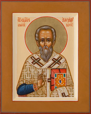 О, свяще́нная главо́, па́стырю до́брый слове́сных ове́ц Христо́вых, священному́чениче Алекса́ндре, Иерусали́мская похвало́, всеми́рный свети́льниче и ско́рый на́ш засту́пниче и помо́щниче в ско́рбех, беда́х и вся́ких ну́ждах. Услы́ши на́с гре́шных, к тебе́ прибега́ющих и моля́щихся. Испроси́ предста́тельством твои́м у Всеми́лостиваго Бо́га на́шего ми́р Це́ркви Его́, под зна́мением Креста́ во́инствующей, тишину́ по́мыслов на́ших, воздержа́ние от па́губных страсте́й и покая́ние. Е́й, чадолюби́вый и ми́лостивый о́тче на́ш, священному́чениче Алекса́ндре, архиере́ю Бо́жий! Тебе́, предстоя́щу Престо́лу Госпо́дню, ве́домы вся́ ну́жды на́ша духо́вныя и жите́йския. При́зри на на́с оте́ческим о́ком и твои́ми моли́твами утверди́ на́с в ве́ре, наде́жде и любве́, суему́дрия и раско́лы истреби́, боля́щия исцели́, печа́льныя уте́ши, оби́женныя заступи́, бе́дствующим помози́, путеше́ствующим спутеше́ствуй. Не посрами́ на́с, уго́дниче Бо́жий, к тебе́ с ве́рою притека́ющих, но яви́ дре́вния ми́лости твоя́, и́миже отце́м на́шим вспомоществова́л еси́, не отри́ни и на́с, предстоя́щих всечестне́й ико́не твое́й, я́ко тебе́ жи́ву су́щу. Умоли́ у́бо Ми́лостиваго Бо́га сохрани́тися на́м до кончи́ны дне́й на́ших в стра́се Бо́жием, и да отпу́стит на́м Госпо́дь вся́ прегреше́ния на́ша во́льная и нево́льная, и да изба́вит на́с твои́м предста́тельством от ве́чных му́к, и сподо́бит ра́дости ве́чныя наслади́тися ку́пно с тобо́ю и со все́ми святы́ми, во ве́ки веко́в. Ами́нь.⚜⚜⚜