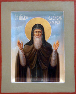 Пусты́нный жи́тель, и в телеси́ А́нгел,/ и чудотво́рец яви́лся еси́, Богоно́се о́тче наш Фео́доре:/ посто́м, бде́нием, моли́твою небе́сная дарова́ния прии́м,/ исцеля́еши неду́жныя и ду́ши ве́рою притека́ющих ти./ Сла́ва Да́вшему тебе́ кре́пость,/ сла́ва Венча́вшему тя,// сла́ва Де́йствующему тобо́ю всем исцеле́ния.⚜⚜⚜