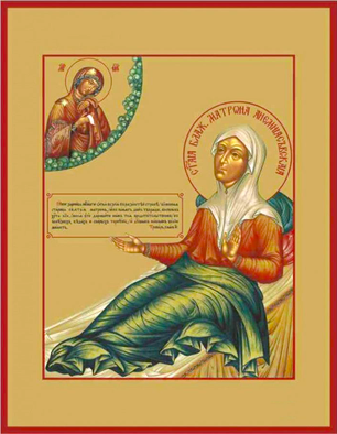 Я́ко зарни́ца небе́снаго огня́ возсия́ в рязанстей стране́ блаже́нная ста́рица свята́я Матро́на, ея́же па́мять дне́сь творя́ще, воспои́м Христа́ Бо́га, моля́ще Его́ дарова́ти на́м тоя́ предста́тельством в боле́знех, беда́х и ско́рбех терпе́ние, и душа́м на́шим ве́лию ми́лость.⚜⚜⚜
