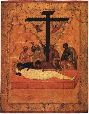 Благообра́зный Ио́сиф,/ с дре́ва снем пречи́стое Те́ло Твое́,/ плащани́цею чи́стою обви́в,// и воня́ми во гро́бе но́ве покры́в положи́.