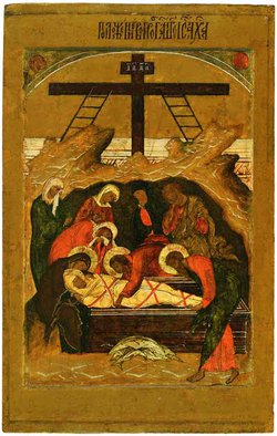 И ныне: Мироно́сицам жена́м при гро́бе предста́в, А́нгел вопия́ше:/ ми́ра ме́ртвым суть прили́чна,// Христо́с же истле́ния яви́ся чуждь.⚜⚜⚜