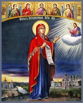 Боголюби́вая Цари́це,/ Неискусому́жная Де́во Богоро́дице Мари́е,/ моли́ за ны Тебе́ Возлюби́вшаго/ и ро́ждшагося от Тебе́ Сы́на Твоего́ Христа́ Бо́га на́шего,/ пода́ти нам оставле́ние прегреше́ний,/ ми́рови мир, земли́ плодо́в изоби́лие,/ па́стырем святы́ню/ и всему́ челове́чу ро́ду спасе́ние./ Гра́ды на́ша и страны́ Росси́йския от нахожде́ния иноплеме́нных заступи́/ и от междоусо́бныя бра́ни сохрани́./ О, Ма́ти Боголюби́вая Де́во!/ О, Цари́це Всепе́тая!/ Ри́зою Твое́ю покры́й нас от вся́каго зла,/ от ви́димых и неви́димых враг защити́,// и спаси́ ду́ши на́ша.🙏🙏🙏
