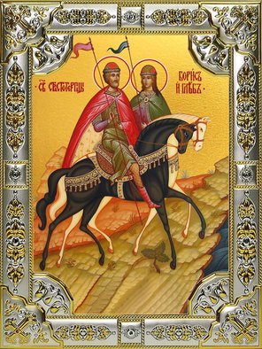 О, дво́ице свяще́нная, бра́тие прекра́сная, до́блии страстоте́рпцы Бори́се и Гле́бе, от ю́ности Христу́ ве́рою, чи́стотою и любо́вию послужи́вшии, и кровми́ свои́ми, я́ко багряни́цею укра́сившиися и ны́не со Христо́м ца́рствующии, не забу́дите и нас су́щих на земли́, но я́ко те́плии засту́пницы, ва́шим си́льным хода́тайством пред Христо́м Бо́гом, сохрани́те ю́ных во святе́й ве́ре и чистоте́ неврежде́нными от вся́каго прило́га неве́рия и нечистоты́, огради́те всех нас от вся́кия ско́рби, озлобле́ний и напра́сныя сме́рти, укроти́те вся́кую вражду́ и зло́бу, де́йством воздвиза́емую от бли́жних и чу́ждых. Мо́лим вас, христолюби́вии страстоте́рпцы, испроси́те у Великодарови́таго Влады́ки всем нам оставле́ние прегреше́ний на́ших, единомы́слие и здра́вие, избавле́ние от наше́ствия иноплеме́нных, междоусо́бныя бра́ни, я́звы и гла́да. Снабдева́йте свои́м заступле́нием всех чту́щих святу́ю па́мять ва́шу во ве́ки веко́в. Ами́нь.🙏🙏🙏
