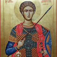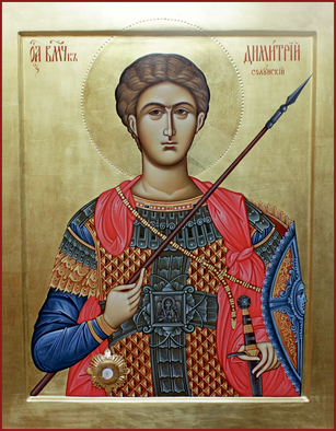 Святы́й и сла́вный великому́чениче Христо́в Дими́трие, ско́рый помо́щниче и те́плый засту́пниче с ве́рою притека́ющих к тебе́! Предстоя́ с дерзнове́нием Небе́сному Царю́, испроси́ у Него́ проще́ние согреше́ний на́ших и о е́же изба́витися нам от всегуби́тельныя я́звы, тру́са, пото́па, огня́, меча́ и ве́чныя ка́зни. Моли́ бла́гость Его́, е́же уще́дрити град сей, оби́тель сию́ и вся́кую страну́ христиа́нскую. Исхода́тайствуй у Царя́ ца́рствующих на враги́ побе́ду и одоле́ние правосла́вным христиа́нам, всей держа́ве правосла́вной мир, тишину́, тве́рдость в ве́ре и преспе́яние во благоче́стии; нам же, чту́щим честну́ю па́мять твою́, испроси́ благода́тное укрепле́ние на дела́ блага́я, да благоуго́дное Влады́це на́шему Христу́ Бо́гу зде творя́ще, сподо́бимся моли́твами твои́ми насле́довати Ца́рствие Небе́сное для ве́чнаго прославле́ния Его́ со Отце́м и Святы́м Ду́хом. Ами́нь.🙏🙏🙏