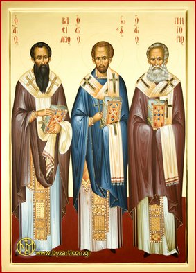 О, пресве́тлии свети́льницы Це́ркве Христо́вы, Васи́лие, Григо́рие и Иоа́нне, све́том правосла́вных догма́тов вся концы́ земли́ озари́вшия и мече́м сло́ва Бо́жия ху́льных смуще́ния и шата́ния ересе́й угаси́вшия! Припа́дающе к ва́шему милосе́рдию, с ве́рою и любо́вию из глубины́ души́ вопие́м: предстоя́ще престо́лу Пресвяты́я, Единосу́щныя, Животворя́щия и Неразде́льныя Тро́ицы, за Ню́же сло́вом, писа́нием, и житие́м до́бре подвиза́стеся и ду́ши своя́ полага́сте, всегда́ моли́теся Ей, да укрепи́т и ны в правосла́вии и единомы́слии, и непоколеби́мем да́же до сме́рти испове́дании ве́ры Христо́вы, и во вседуше́внем послуша́нии Его́ Це́ркви Святе́й; да препоя́шет ны с высоты́ си́лою на вся неви́димыя и ви́димыя враги́ на́ша; да соблюде́т Це́рковь Свою́ незы́блему от неве́рия, суеве́рия, ересе́й и раско́ла; да да́рует наро́ду на́шему долгоде́нствие и во всем благо́е поспеше́ние; па́стырем на́шим да пода́ст духо́вное трезве́ние и ре́вность о спасе́нии пасо́мых, власте́м суд и пра́вду, во́ином терпе́ние, му́жество и одоле́ние на враги́, си́рым и вдови́цам заступле́ние, боля́щим исцеле́ние, ю́ным благо́е в ве́ре возраста́ние, ста́рцам утеше́ние, оби́димым заступле́ние и всем вся, ко вре́менней и ве́чней жи́зни потре́бная, я́ко да в ми́ре и покая́нии, жела́нием спасе́ния горя́ще, Го́сподеви рабо́тающе, до́брым по́двигом подвиза́ющеся, тече́ние на́ше сконча́ем и сподо́бимся в Небе́снем Ца́рствии ку́пно с ва́ми всегда́ пе́ти и сла́вити пресвято́е и великоле́пое и́мя Отца́ и Сы́на и Свята́го Ду́ха во ве́ки веко́в. Ами́нь.🙏🙏🙏