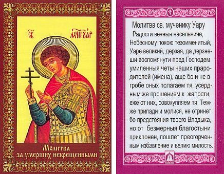 В докладе на епархиальном собрании Москвы 2003 г. Святейший Патриарх Алексий II отметил: «В последнее время все более получает распространение почитание святого мученика Уара. В честь его строятся часовни, пишутся иконы. Из его жития следует, что он имел особую благодать от Бога молиться за некрещеных умерших людей. Во времена воинствующего...