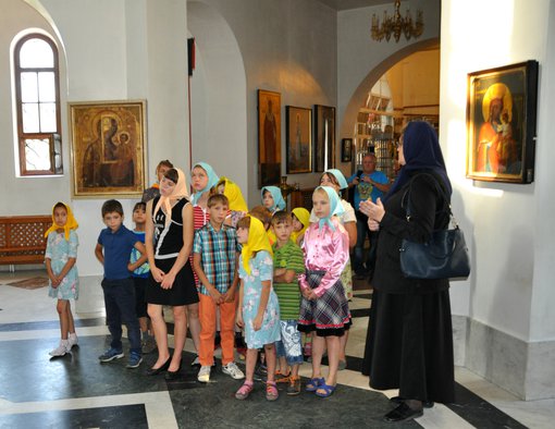 16 августа в Иоанно-Предтеченский мужской монастырь посетили дети из социально-реабилитационного Центра «Снегири». В храме в честь Архистратига Михаила дети увидели необыкновенно красивый иконостас, в котором все иконы написаны мастерами из Санкт-Петербурга, поднялись на клирос, увидев там множество богослужебных книг и нот. Очень понравился маленьким паломникам нижний храм в честь святой равноапостольной Марии Магдалины там, и помолились о здравии.