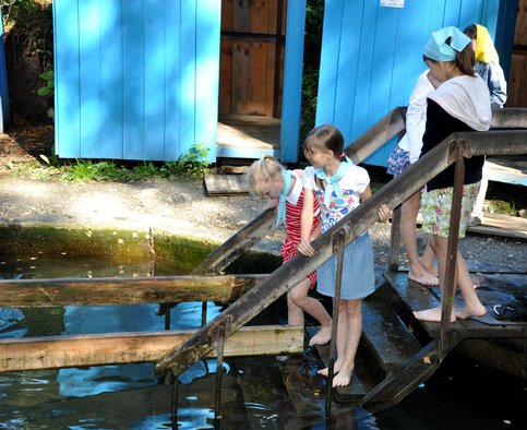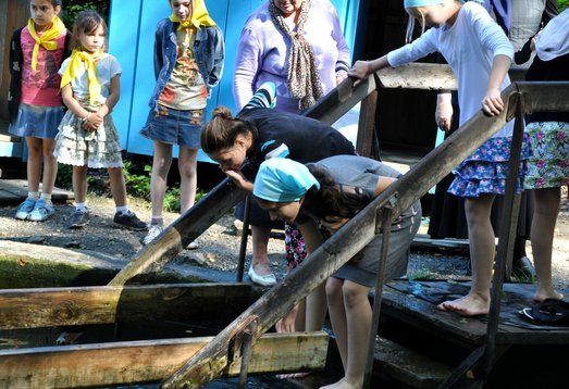 Это тихое умиротворенное место. Сложно поверить, что здесь когда-то был лагерь, славившейся своей жестокостью и бесчеловечностью, вернуться, откуда живым было практически невозможно. Наряду с заключенными, отбывающими свои сроки за тяжелые преступления, на зоне лагеря трудились и священники, страдавшие здесь за веру. Разумеется, они не были ни в чем виновны и сейчас реабилитированы. На месте массового расстрела священнослужителей забил родник. Вскоре люди стали замечать его целебные свойства, и к источнику потянулись паломники. И не только из Новосибирской области, со всей России. А вскоре слухи о чудотворной воде распространились далеко за пределы нашей родины. В честь Новомученников и Исповедников Российских здесь освящен храм, построенный на пожертвования людей приезжающих на Святой источник. На такое святое место 25 августа приехали дети из социально-реабилитационного Центра «Снегири», чтобы помолиться и окунуться в целебные воды источника.