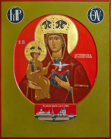 Леснинская икона Божией Матери, представляющая собой вырезанное рельефом на темно-красном овальном камне изображение Пресвятой Богородицы и Богомладенца, была обретена в праздник Воздвижения Честного и Животворящего Креста Господня в 1683 году.