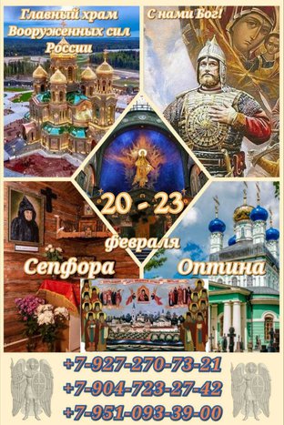 Паломнический центр «Преображение» приглашает в поездку с 20 по 23 февраля по маршруту: Главный храм Вооруженных сил России – Оптина пустынь – Клыково – Феклина пустынь.