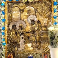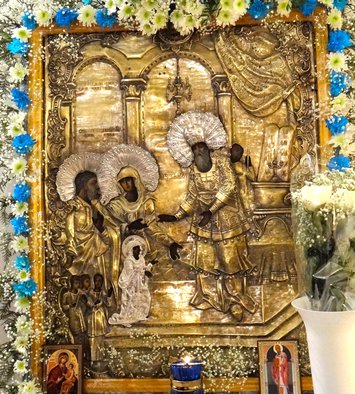 Велича́ем Тя, Пресвята́я Де́во, Богоизбра́нная Отрокови́це, и чтим е́же в храм Госпо́день вхожде́ние Твое́.