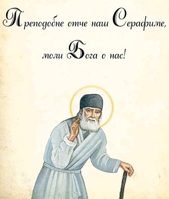 От ю́ности Христа́ возлюби́л еси́, блаже́нне, и, Тому́ Еди́ному рабо́тати пла́менне вожделе́в, непреста́нною моли́твою и трудо́м в пусты́ни подвиза́лся еси́, умиле́нным же се́рдцем любо́вь Христо́ву стяжа́в, избра́нник возлю́блен Бо́жия Ма́тере яви́лся еси́. Сего́ ра́ди вопие́м ти: спаса́й нас моли́твами твои́ми, Серафи́ме, преподо́бне о́тче наш.
