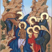 Во струя́х днесь Иорда́нских быв, Госпо́дь Иоа́нну вопие́т: не убо́йся крести́ти Мя, спасти́ бо приидо́х Ада́ма первозда́ннаго.