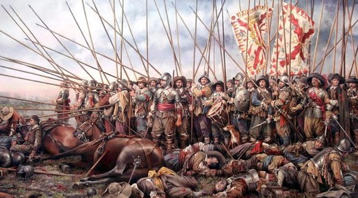 19 мая 1643 года под Рокруа 2 000 испанских пехотинцев встали плечом к плечу, окружённые французской пехотой, кавалерией и артиллерией. Это были ветераны Старой гвардии — солдаты терции, той самой, что сто лет назад ломала фаланги, теснила швейцарцев и маршировала от Неаполя до Брюсселя под знаменами Габсбургов. Теперь они стояли с теми же пиками — пятиметровыми копьями, пережившими десятки кампаний, — в эпоху, когда пехота уже стреляла, а не колола. Французские мушкетёры сомкнули кольцо. Артиллерия открыла огонь. В гуще дыма офицеры терции, обнажив шпаги, кричали «¡Viva el Rey!» — и повели остатки в контратаку.