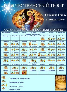 Постимся по силам, с миром в душе, с добротой к ближним. И Младенец Христос обязательно родится в наших сердцах.
