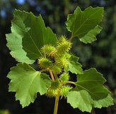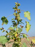 Однолетнее однодомное серо-зелёное растение с шершаво-волосистым ветвистым стеблем. Листья округлолопастные, с острыми крупнозубчатыми лопастями и сердцевидным о...