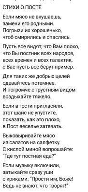 Стихи о посте в стиле "вредных советов" ;) Автор свящ. Владимир Панарин.