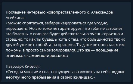 Непонятно, что хотят авторы этих сопоставлений донести до всех? Сопоставление речей умершего священника и слов Патриарха...