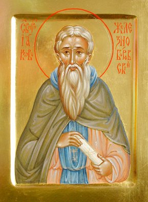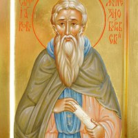 Серде́чная о́чи, досточу́дне, ко Го́споду впери́в/ и теле́сныя стра́сти из ко́рене исторга́я,/ неболе́зненную жизнь в боле́знех восприя́л еси́, преподо́бне,/ боле́знем же лю́тым дае́ши исцеле́ние прося́щим с ве́рою у тебе́,/ те́мже мо́лим тя, досточу́дне,/ исцели́ на́ша боле́зни душе́вныя и теле́сныя, да зове́м ти:/ ра́дуйся, Иа́кове Богому́дре, о́тче наш.