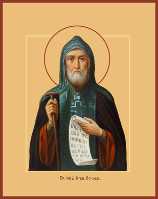 О преподо́бне о́тче Иове, и́ноков трудолю́бнаго жития́ богому́дрый наста́вниче, кро́тости и воздержа́ния, чистоты́ и целому́дрия, братолю́бия и нищелю́бия, терпе́ния и бде́ния от ра́нней ю́ности до по́здней ста́рости неутоми́мый подви́жниче, ве́ры Правосла́вныя вели́кий ревни́телю и непреобори́мый побо́рниче, земли́ Волы́нския и Га́лицкия свети́ло благосве́тлое и святы́я Поча́евския оби́тели непобеди́мый защи́тниче! При́зри о́ком благоутро́бия твоего́ на нас недосто́йных чад твои́х, к тебе́ усе́рдно по вся дни прибега́ющих и на боголюби́выя лю́ди сия́, пред твои́ми духоно́сными и многоцеле́бными моща́ми собра́вшияся и благогове́йно к тем припа́дающия, и испроси́ предста́тельством твои́м ко Всевы́шнему Влады́це им и нам вся, я́же к животу́ и благоче́стию, поле́зная и благопотре́бная: боля́щия исцели́, малоду́шныя обо́дри, скорбя́щия уте́ши, оби́димыя заступи́, немощны́я подкрепи́ и пове́рженныя до́лу возста́ви, всем вся, благода́тию от Бо́га да́нною, да́руй, по коего́ждо ну́жде и потре́бе, во спасе́ние души́ и во здра́вие те́лу. Вознеси́ уго́дниче Бо́жий всемо́щную моли́тву твою́ о Росси́йской держа́ве, да бу́дет вы́ну мир и тишина́, благоче́стие и благоде́нствие, в суда́х пра́вда и ми́лость, в сове́тах му́дрость и благо́е преспе́яние, да утвержда́ется же во благи́х челове́цех ве́рность, в злых же страх и боя́знь, во е́же преста́ти им от зла и твори́ти до́брая, да та́ко в держа́ве Росси́йстей ца́рство Христо́во расте́т и мно́жится и да просла́вится в нем Бог, ди́вный во святы́х свои́х: Ему́же еди́ному подоба́ет вся́кая сла́ва, честь и поклоне́ние Отцу́ и Сы́ну, и Свято́му Ду́ху, ны́не и при́сно, и во ве́ки веко́в. Ами́нь.