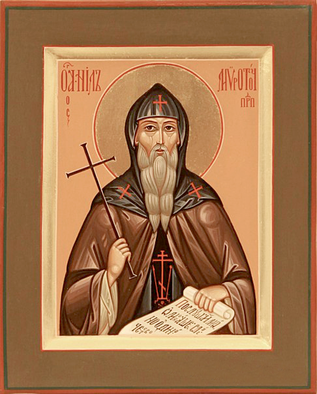 Терпя́, потерпе́л еси́ су́етныя обы́чаи/ и мирски́я нра́вы бра́тии твои́х,/ обре́л еси́ пусты́нное безмо́лвие, преподо́бне о́тче,/ иде́же посто́м, бде́нием и непреста́нною моли́твою в труде́х подвиза́вся,/ уче́ньми твои́ми пра́выя стези́ указа́л еси́ нам/ ше́ствовати ко Го́споду./ Те́мже и почита́ем тя, всеблаже́нне Ни́ле.
