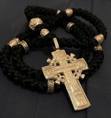 Ра́дуйся, живоно́сный Кре́сте, / благоче́стия непобеди́мая побе́да, / дверь ра́йская, / ве́рных утвержде́ние, / Це́ркве огражде́ние, / и́мже тля разори́ся и упраздни́ся, / и попра́ся сме́ртная держа́ва, / и вознесо́хомся от земли́ к Небе́сным; / oру́жие непобеди́мое, / бесо́в сопротивобо́рче, / сла́ва му́чеников, / преподо́бных я́ко вои́стину удобре́ние, / приста́нище спасе́ния, / да́руяй ми́ру ве́лию ми́лость.