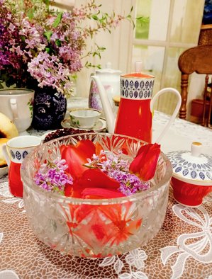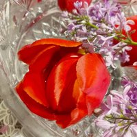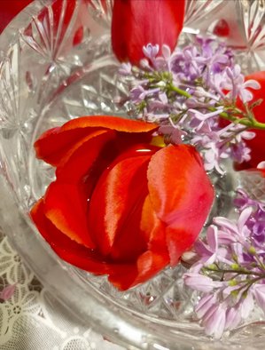 Красные тюльпаны были с нами всю Пасхальную неделю. Устали стебельки, обломились. Но цветы ещё с нами!