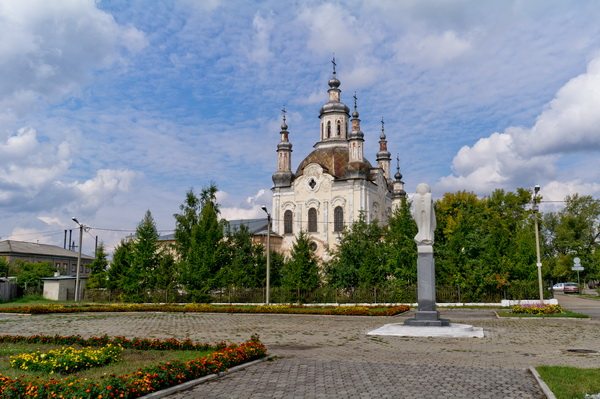 Кирпичный храм, построенный в 1771–1777 гг., хороший образец сибирского барокко тобольской школы, отличающийся сложными пластическими формами апсиды. Основной объём — двусветный четверик, завершённый пятиглавием, к которому с запада примыкает двухпридельная трапезная (приделы Петропавловский и Михаило-Архангельский). В 1820–1821 гг. построе...