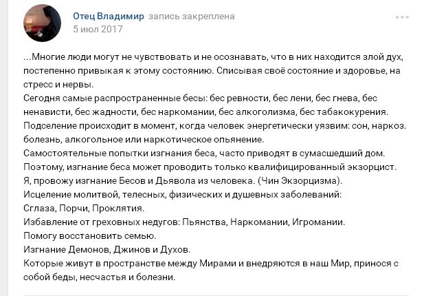 В сети интернет, в социальных сетях более трех лет активно ведёт свою деятельность лжесвященник-оккультист Сергей Кобзарь. Он же "Священник Владимир", "Отец Владимир", "Владимир Гусев", "Священник Отец Владимир. Экзорцист - Демонолог.", "Шестериков Михаил Петрович" и др.