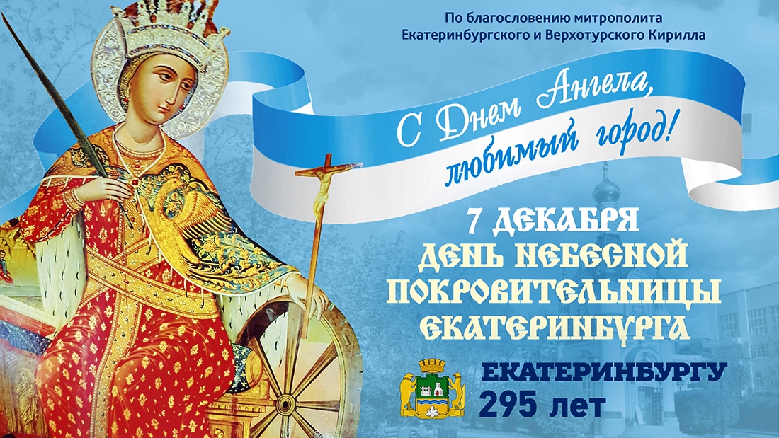 Небесно-голубые банеры с изображением святой Екатерины и поздравлением с «Днем Ангела, любимый город!», размещенные у ведущих храмов Екатеринбурга, в ближайшее время появятся как на мультимедийных экранах города и области, так и в эфире ведущих телеканалов.