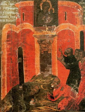 Во время правления императора Юлиана Отступника (361 - 363) в Лидде совершилось новое чудо. В храм были посланы каменотесы для уничтожения чудотворного изображения. Однако, как ни старались они стесать священное изображение, оно не исчезало, а лишь углублялось более и более внутрь столба. Слава о благодатном образе распространилась по всему миру. С него была сделана копия, которая была увезена в Рим и также получила чудотворную силу (празднование 26 июня).